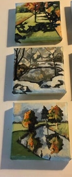 Hard aan het werk voor 3 portretten in opdracht, voor december moeten ze klaar zijn. verder bezig met een groot landschap en deze kleintjes zijn alledrie verkocht;