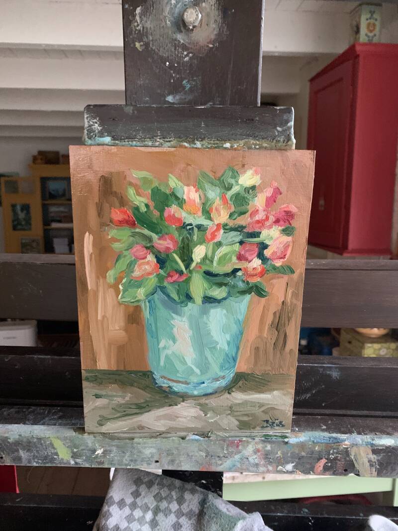 De sneeuw van de vorige week is weg en dan begint toch wel een beetje het verlangen te komen naar de lente zeker met deze oude emmer vol tulpen.