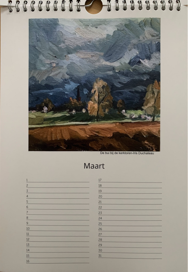 Verjaardagskalender met 12 schilderijen passend bij het seizoen.